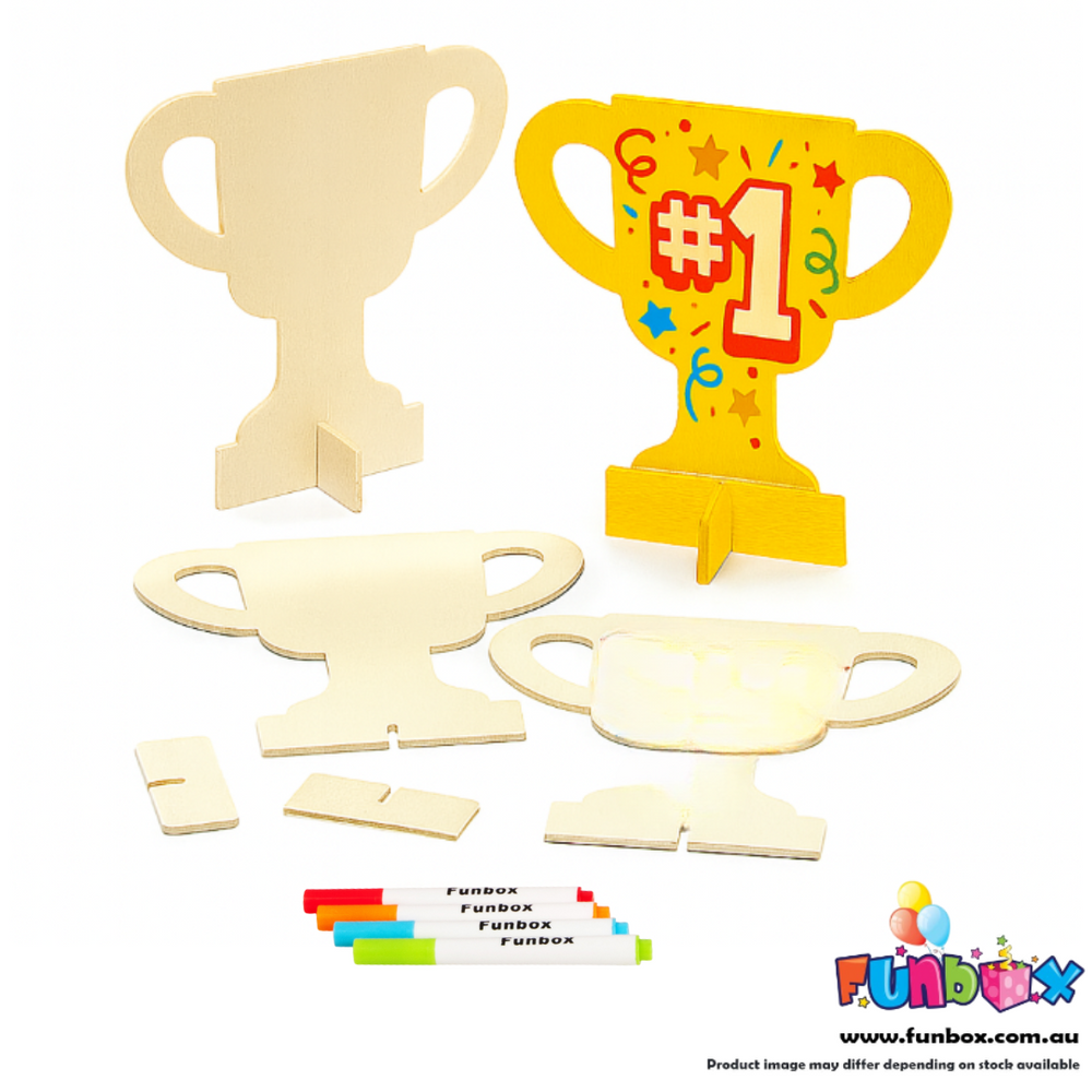 *Each kit comes with a plain Wooden Trophy with markers and stickers for decorating. To enhance this experience, combine it with one of our All-In-One Craft Boxes to design a genuinely distinctive art masterpiece!