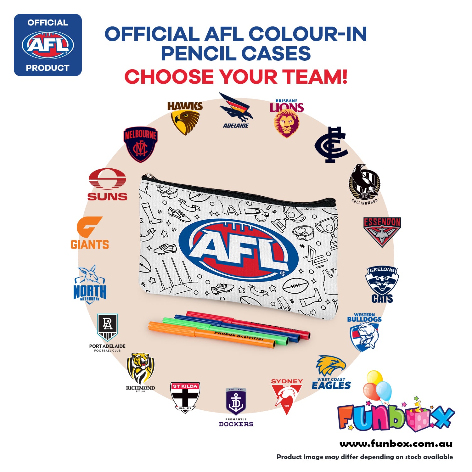 Official AFL Team Colour-In Pencil Case (choose your club – most logos are black and white)