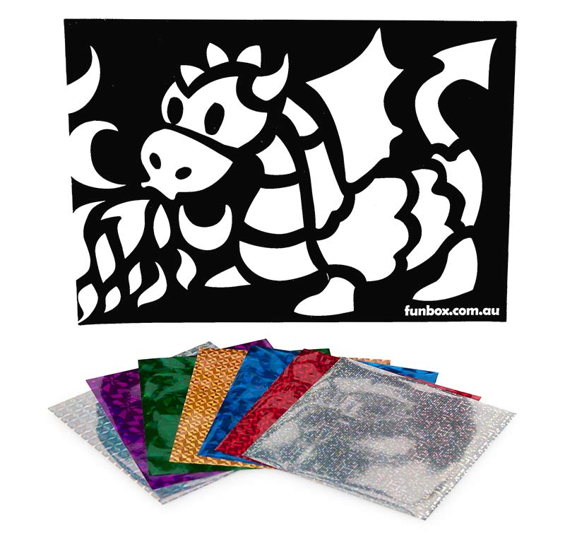 Kit includes an A5 Foil Art cardboard sheet and 7 pieces of holographic paper.