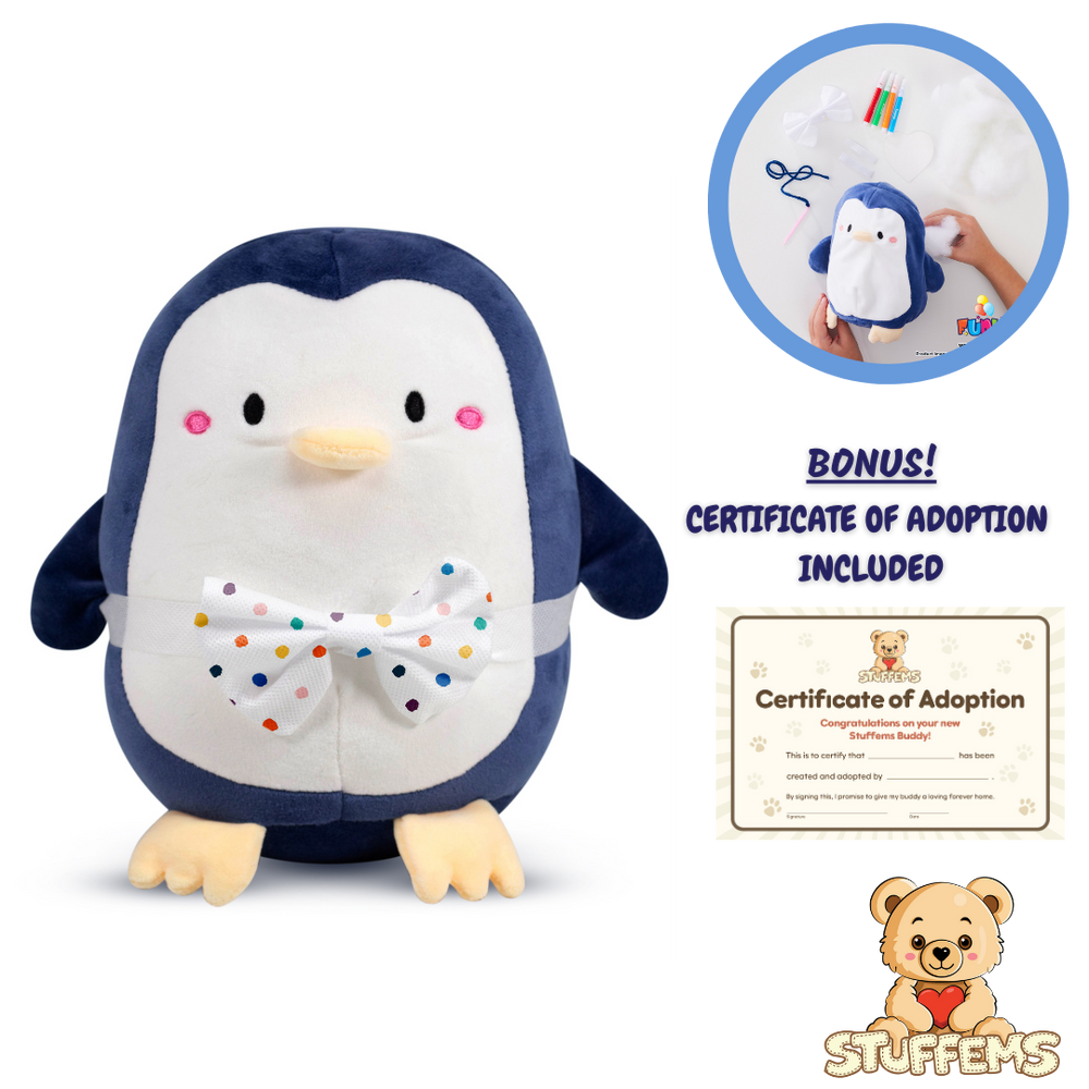 Soft, unstuffed Penguin plush – Ready to be brought to life with a big squishy cuddle factor