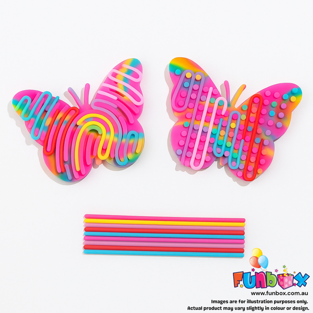 Spark creativity and sensory play with our Noodle Maze Activity Board, a hands-on activity kids will love! Each board features a fun, maze-like design that encourages little learners to thread and trace colourful silicone noodles through winding pathways. Available in four adorable designs — Butterfly, Dinosaur, Elephant, and Unicorn — there’s a favourite for every child.